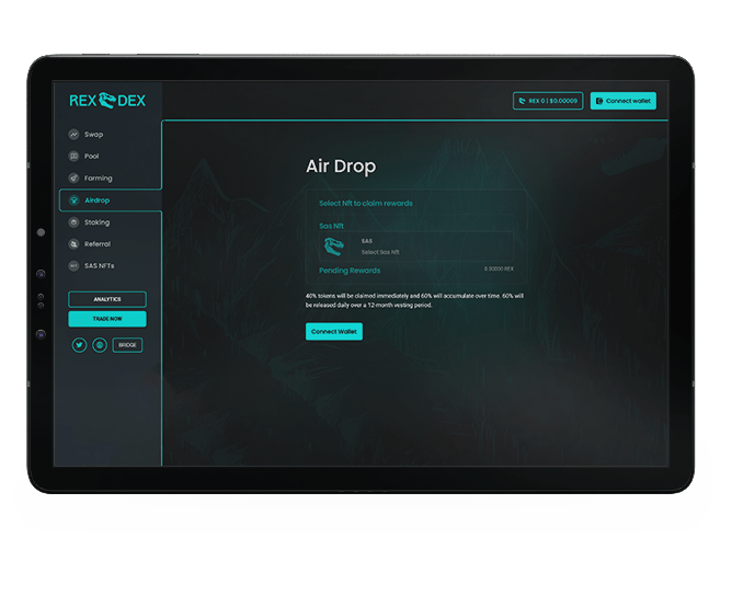 Ironclad Ledger leveraged Uniswap v2 protocols to create a decentralized automated market maker (AMM) exchange within the RexDex platform. This allows users to easily swap tokens, provide liquidity, and participate in various liquidity pools.NFT-Integrated Airdrop: